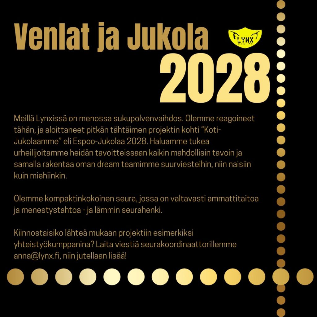 Lynx aloitti syksyllä 2024 pitkän tähtäimen projektin kohti Espoo-Jukolaa 2028. Projekti kattaa niin miehet kuin naisetkin, ja matkaa tehdään yhdessä aikuisten ja nuorten valmennusryhmien kanssa.